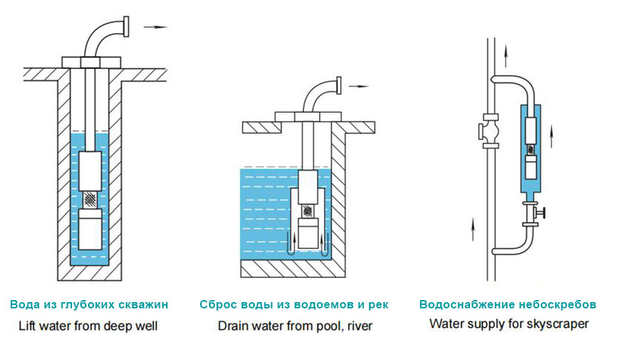 Tích hợp trực tiếp vào bộ sản phẩm, hoạt động ở vùng nước sâu. Chủ yếu được sử dụng để tưới đất nông nghiệp, cấp thoát nước của các thành phố, doanh nghiệp công nghiệp và khai thác mỏ.