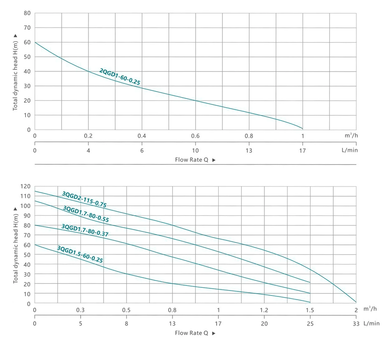 | 2QGD1-60-0,25 | 0.25 | 0.33 | H(m) | 60 | 40 | 29 | 20 | 12 | 1 | ||||||
