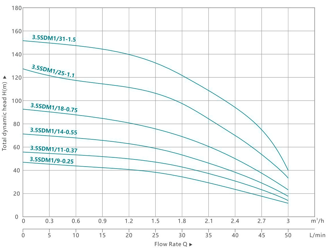 | 3,5SDM1/9-0,25 | 3,5SD1/9-0,25 | 0.25 | 0.33 | H(m) | 46 | 44 | 42 | 41 | 41 | 38 | 36 | 30 | 25 | 19 | 12 |