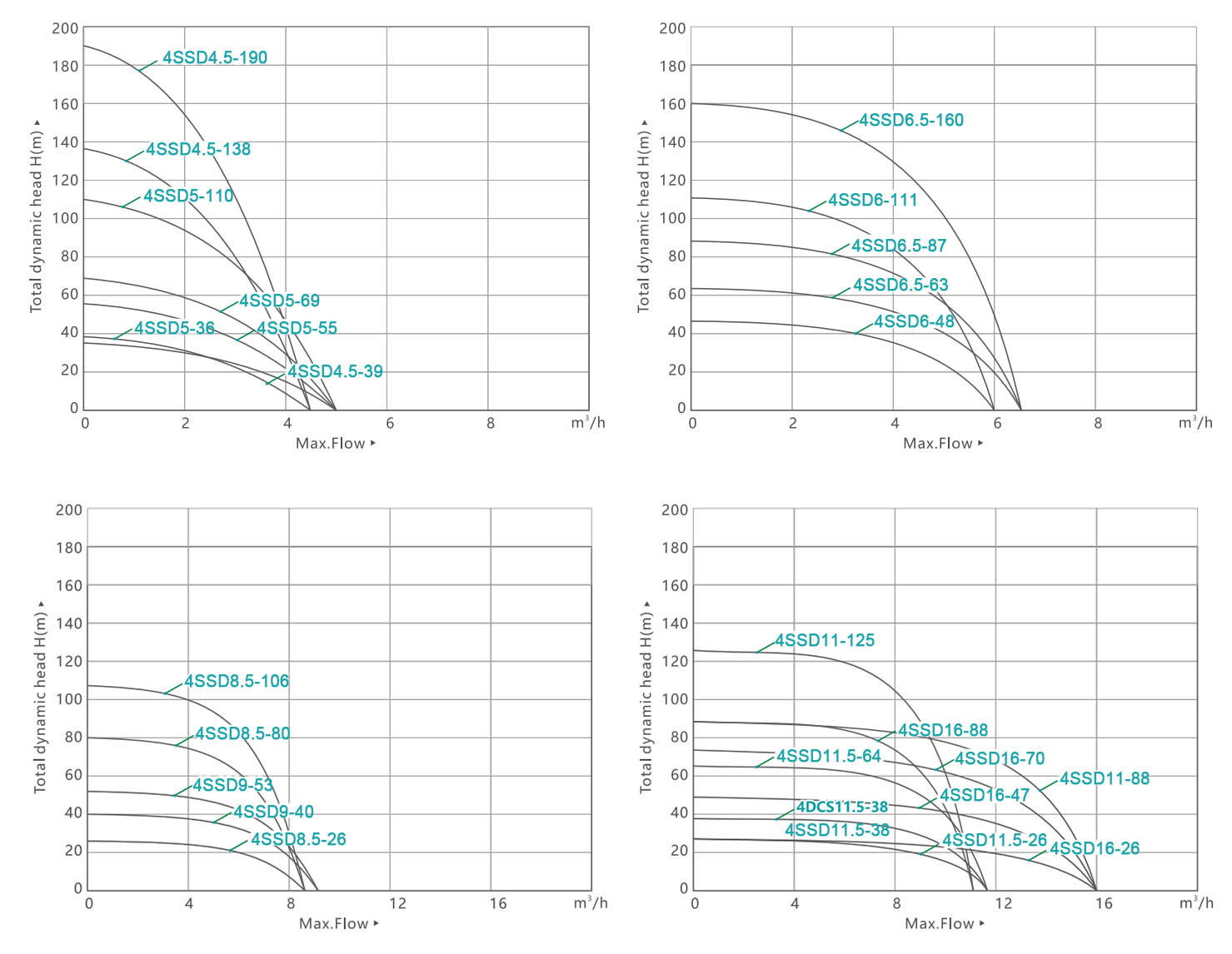 | 4SSD4.5-190-220-2200 | 220 | 220-280 | 2200 | 4.5 | 190 | 1,25" | 2 | <420V | ≥3300W |
