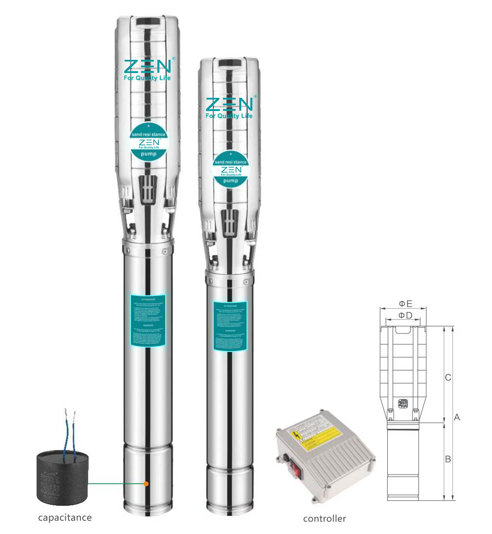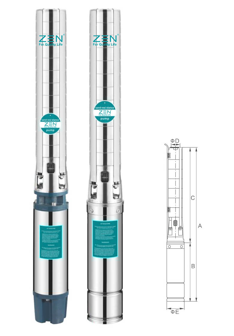 Nếu bạn đang tìm kiếm nguồn cung cấp nước đáng tin cậy cho gia đình, tưới tiêu nông nghiệp hoặc các ứng dụng công nghiệp, thì Máy bơm chìm giếng sâu 6SP17 mang thương hiệu Zen là giải pháp hoàn hảo. Mã định danh*6SP*6: Đường kính lỗ khoan: 148mm (6")* SP: thép không gỉ* 17: Công suất (m³/h)*05: Cảnh* 3.0: Công suất động cơ (KW)