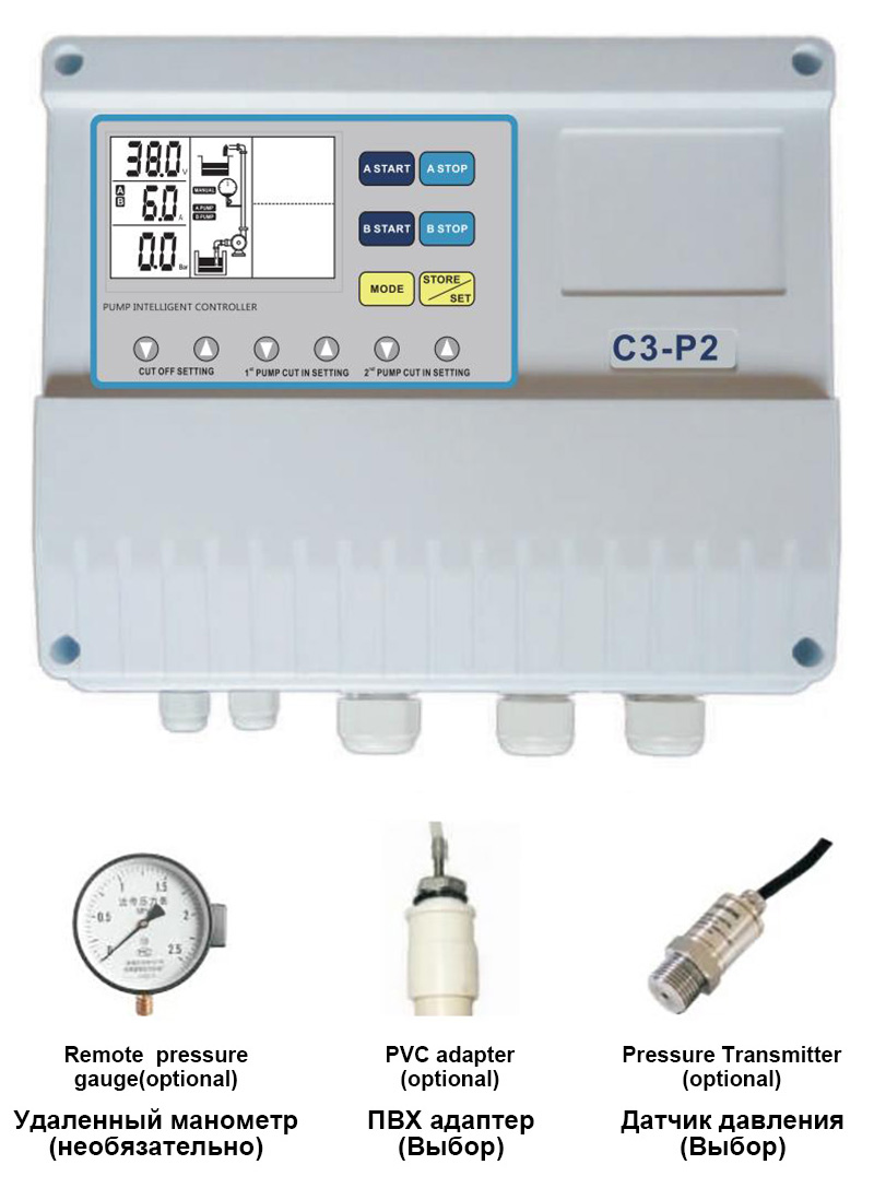 Bộ điều khiển bơm kép tăng áp C-P2 chất lượng cao của ZEN được trang bị các chức năng điều khiển sau: đầu dò điện cực xung/công tắc phao/tiếp điểm điện; đồng hồ đo áp suất/rơle áp suất; màn hình là màn hình LCD động bằng tiếng Anh; chế độ điều khiển bằng tay/tự động và các chức năng bảo vệ đầy đủ ở cả chế độ thủ công và tự động.