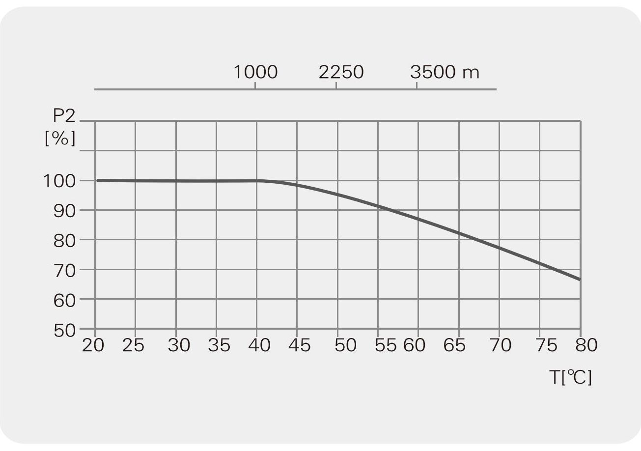 Khi máy bơm chạy ở nhiệt độ môi trường lớn hơn 40 C, hoặc ở nhiệt độ . độ cao trên 1 000 mét, do mật độ không khí thấp và hiệu quả làm mát kém nên công suất đầu ra của động cơ P2 sẽ bị giảm. Công suất động cơ chạy của máy bơm cần phải lớn trong trường hợp trên.