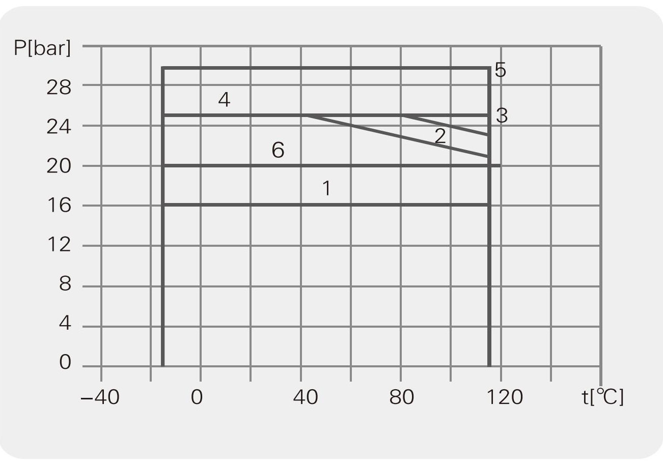 Hình ảnh dưới đây cho thấy giới hạn áp suất và nhiệt độ; áp suất và nhiệt độ nằm trong phạm vi quy định.