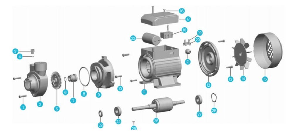 | 6 | Vòng giữ | 16 | bu lông | 26 | Cánh quạt |
