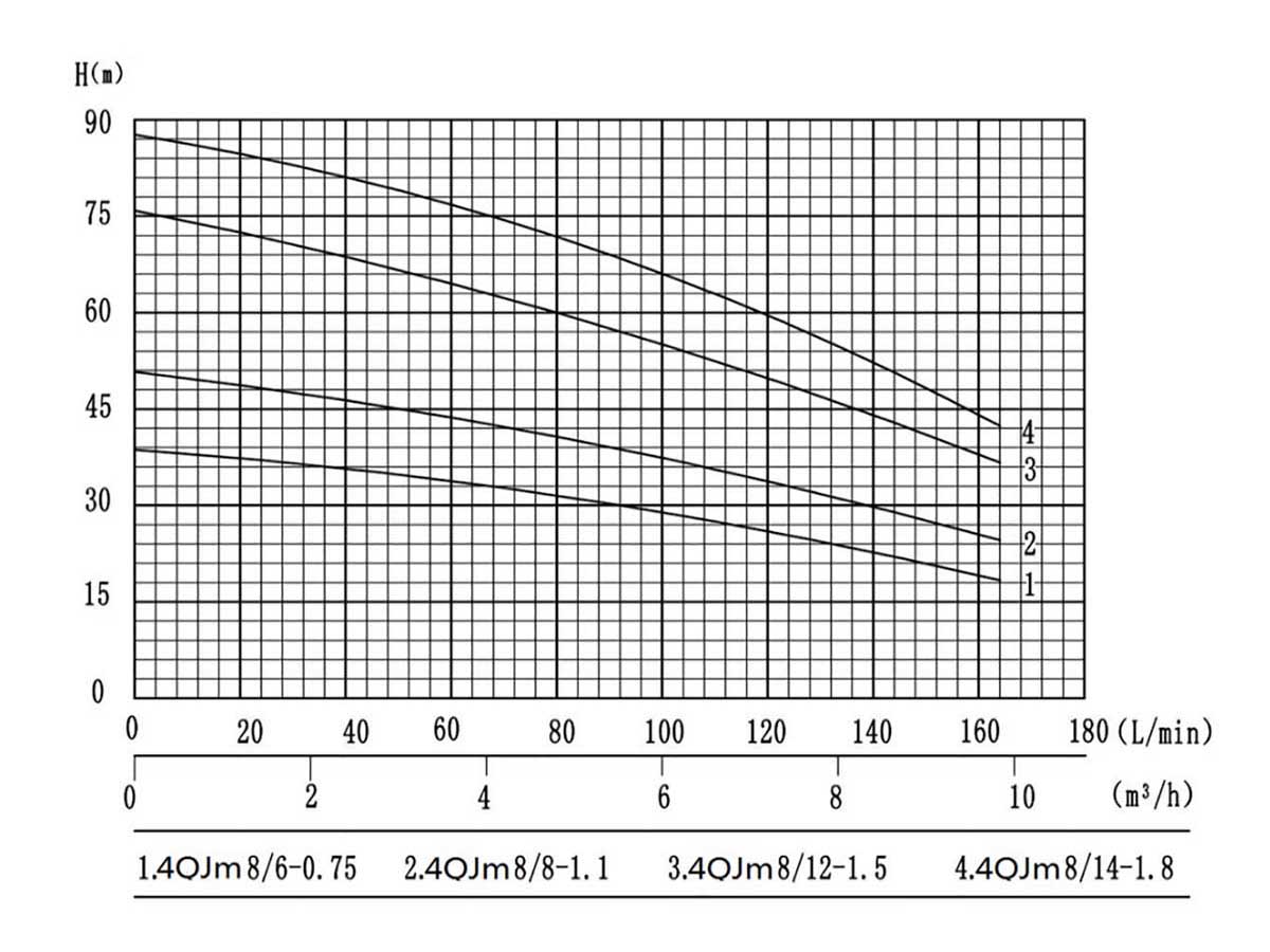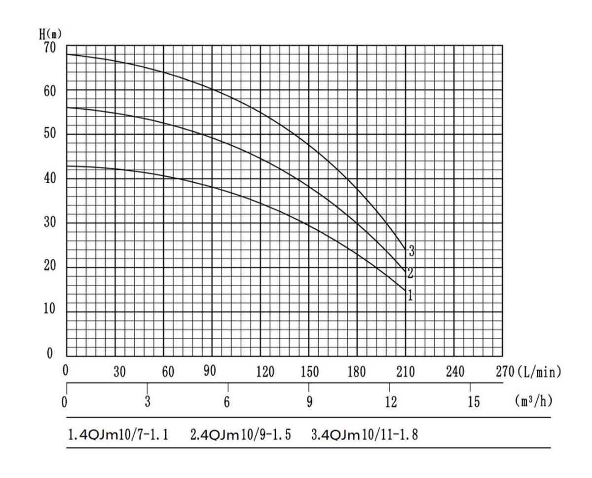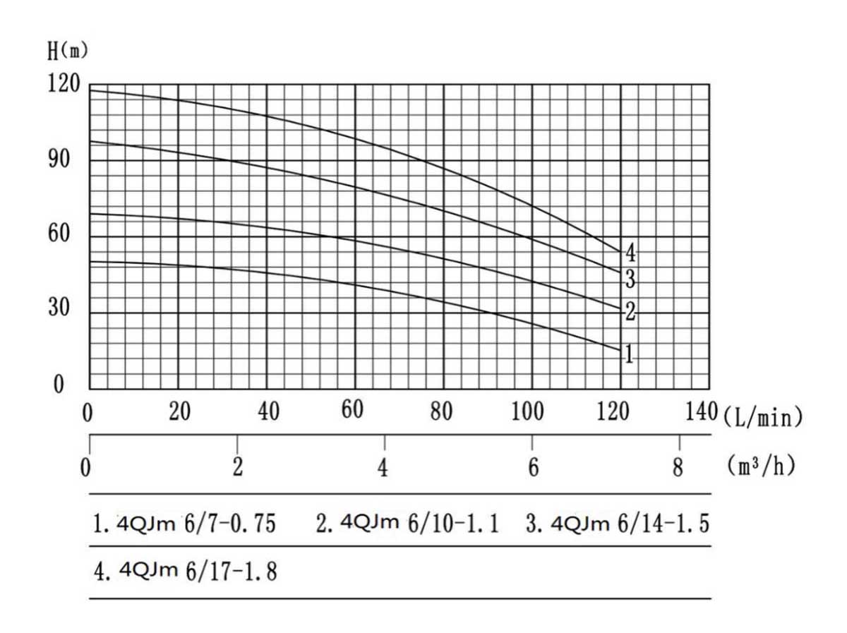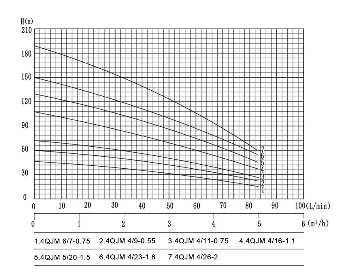 | 4QJM10/7-1.1 | 1.1 | 43 | 15.3 | 2" | H(m) | 43 | 43 | 40 | 38 | 35 | 32 | 25 | 15 | 4 | 2" | |