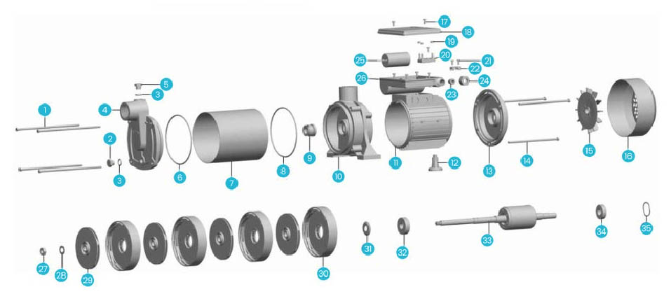 | 9 | Phốt cơ khí | 21 | Phốt cơ khí | 33 | Cánh quạt | ||||||