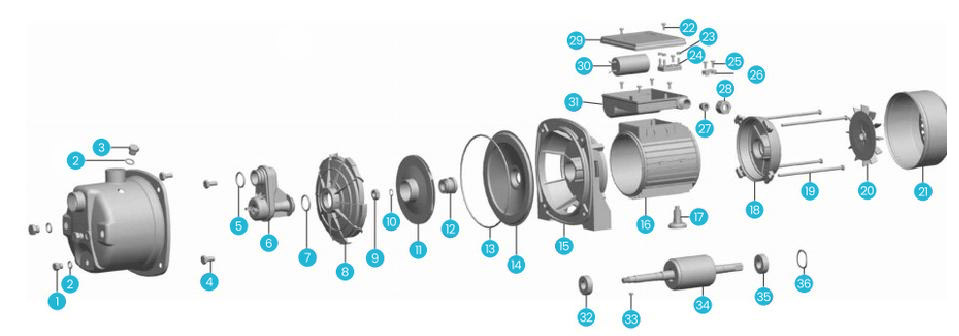 | 2 | Nhẫn "O" | 14 | Vỏ bọc máy bơm | 26 | Máy ép cáp | ||||||
