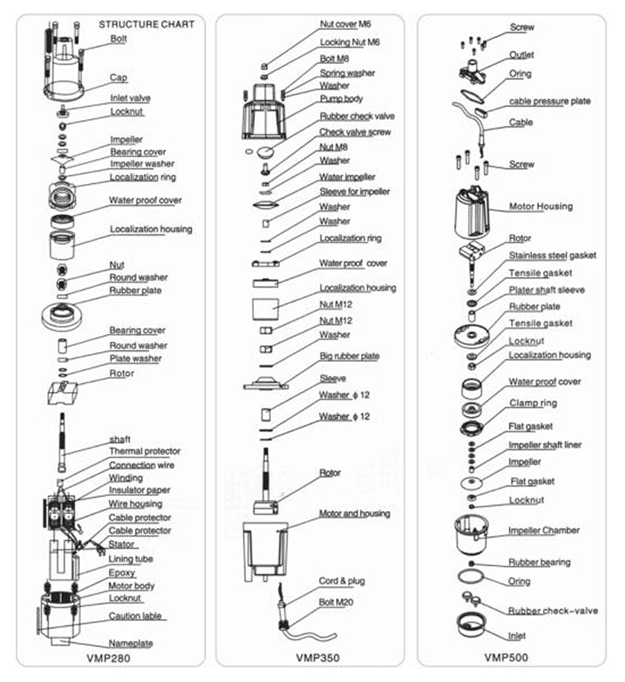 Lắp đặt và sử dụng Máy bơm rung VMP800Máy bơm chìm xử lý nước dòng VMP là máy bơm chìm được sử dụng rộng rãi nhất cho các ứng dụng tưới tiêu đất trồng trọt, thoát nước mỏ và kiểm soát lũ lụt. Nó nhỏ gọn, chất lượng bịt kín chặt chẽ, tiết kiệm năng lượng và hiệu quả, tuổi thọ cao, thích hợp cho sông, hồ, giếng, v.v.