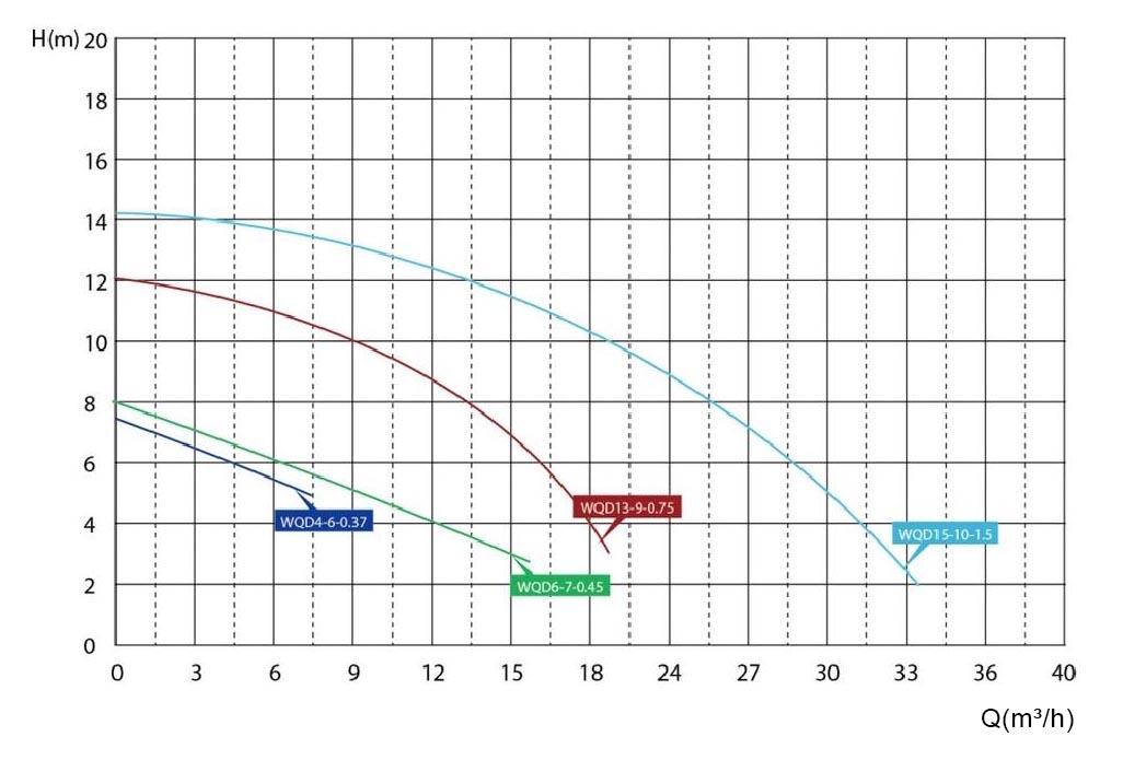 | WQD6-7-0,45 | 1Ph/220V | 0.45 | 0.6 | 2" | 50 | 15 | 6 | 7 | 15.3 | 8 | 14.72 | 43,5*25*18,5 |