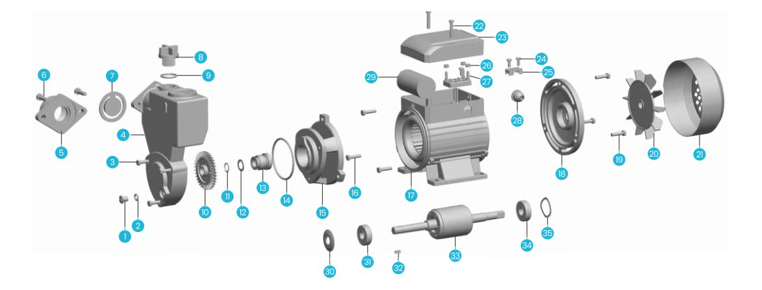 | 9 | Nhẫn "O" | 21 | Vỏ quạt | 33 | Cánh quạt |
