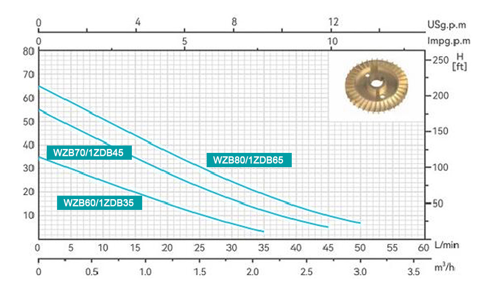 | WZB60 | 0.37 | 0.5 | H(m) | 35 | 30 | 25 | 20 | 15 | 10.5 | 6.5 | 3 | |||||