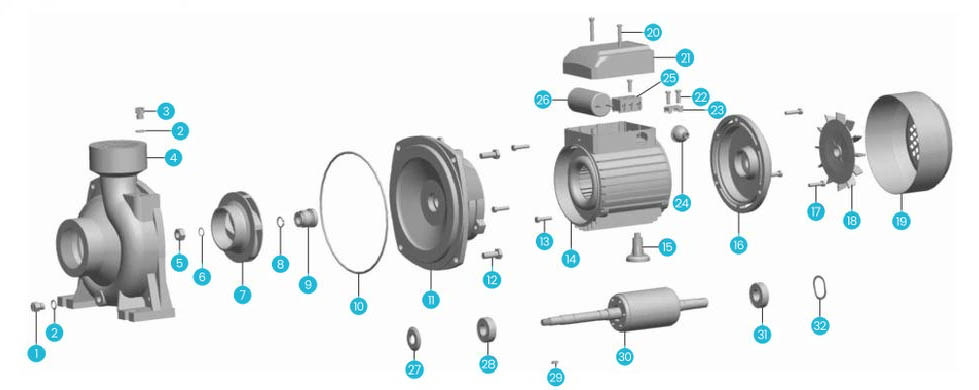 | 10 | Nhẫn "O" | 21 | Vỏ kẹp | 32 | Vòng mở |