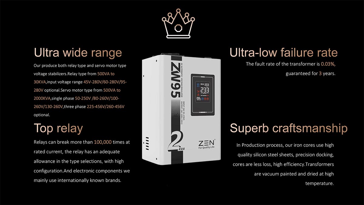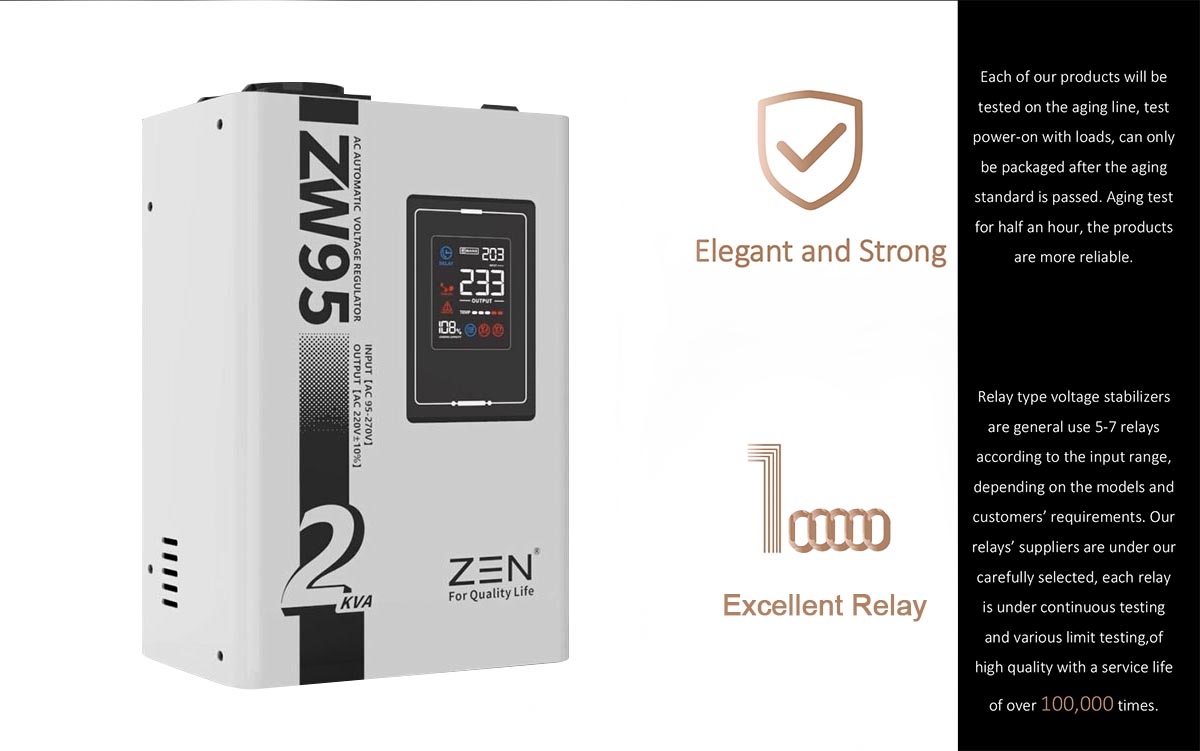 Các thương hiệu Bộ điều chỉnh điện áp xoay chiều tự động ZW95 1KVA đến 30KVA chất lượng cao của nhà máy ZEN Machinery được biết đến với chất lượng và độ tin cậy cao, khiến chúng trở thành lựa chọn phổ biến cho cả ứng dụng dân dụng và công nghiệp. Tính năng sản phẩmModel này là bộ điều chỉnh điện áp nhỏ 220V hoàn toàn tự động được thiết kế cho màn hình kỹ thuật số LED di động. Nó có các đặc điểm như kích thước nhỏ, trọng lượng nhẹ, điều chỉnh điện áp nhanh, không bị biến dạng dạng sóng, v.v.