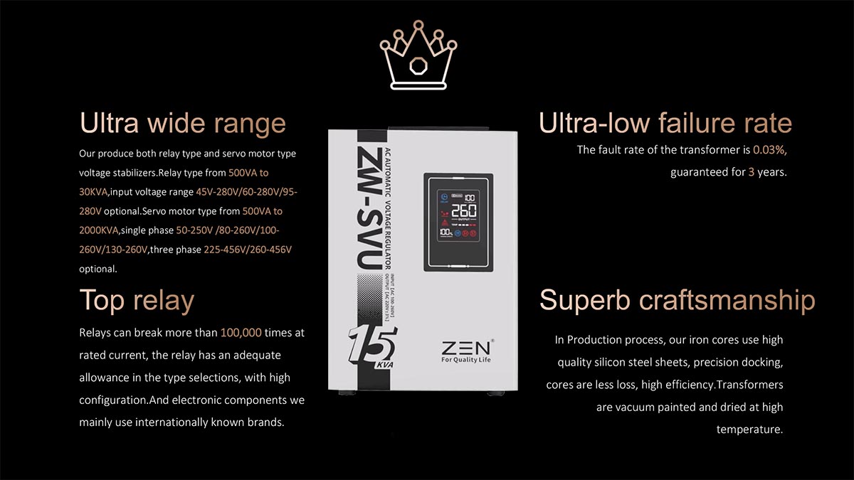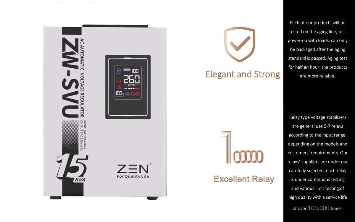 Bộ ổn áp xoay chiều tự động ZWSVU 15KVA chất lượng cao của nhà máy ZEN Machinery là nhà sản xuất và cung cấp nổi tiếng tại Trung Quốc, chuyên sản xuất Bộ ổn áp xoay chiều tự động ZWSVU 15KVA chất lượng cao. Tính năng sản phẩmModel này là bộ điều chỉnh điện áp nhỏ 220V hoàn toàn tự động được thiết kế cho màn hình kỹ thuật số LED di động. Nó có các đặc điểm như kích thước nhỏ, trọng lượng nhẹ, điều chỉnh điện áp nhanh, không bị biến dạng dạng sóng, v.v.
